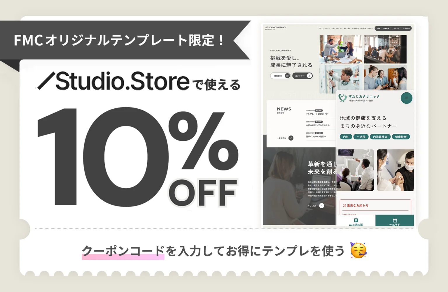 FMCのサイトやSNSなどをご覧いただいた方限定で、10%OFFでテンプレートがご購入いただけます!ご希望の方はクーポンコード「HTL3JBG」をご入力の上、ご購入手続きにお進みください。