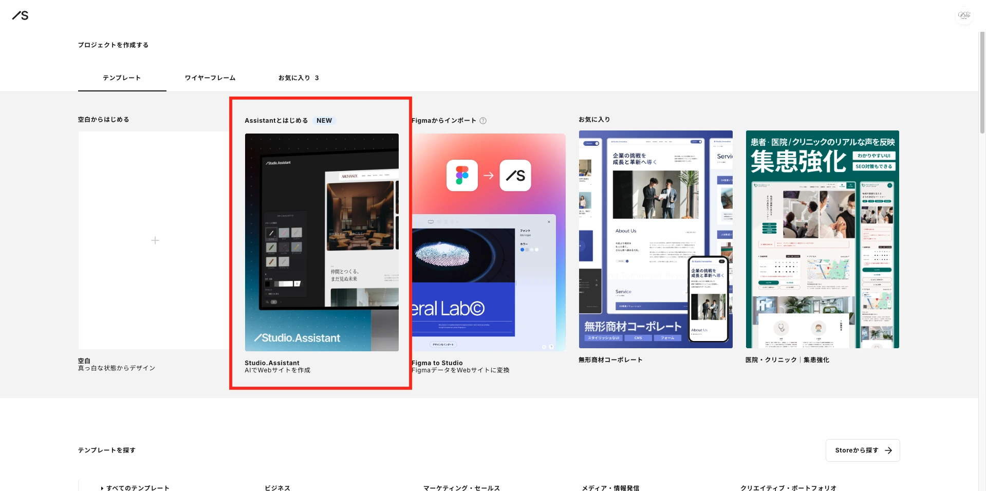 Studio Assistantを使用したサイト制作の流れ