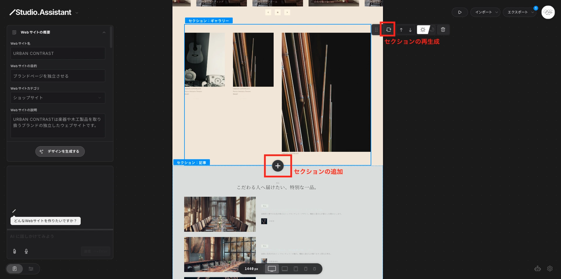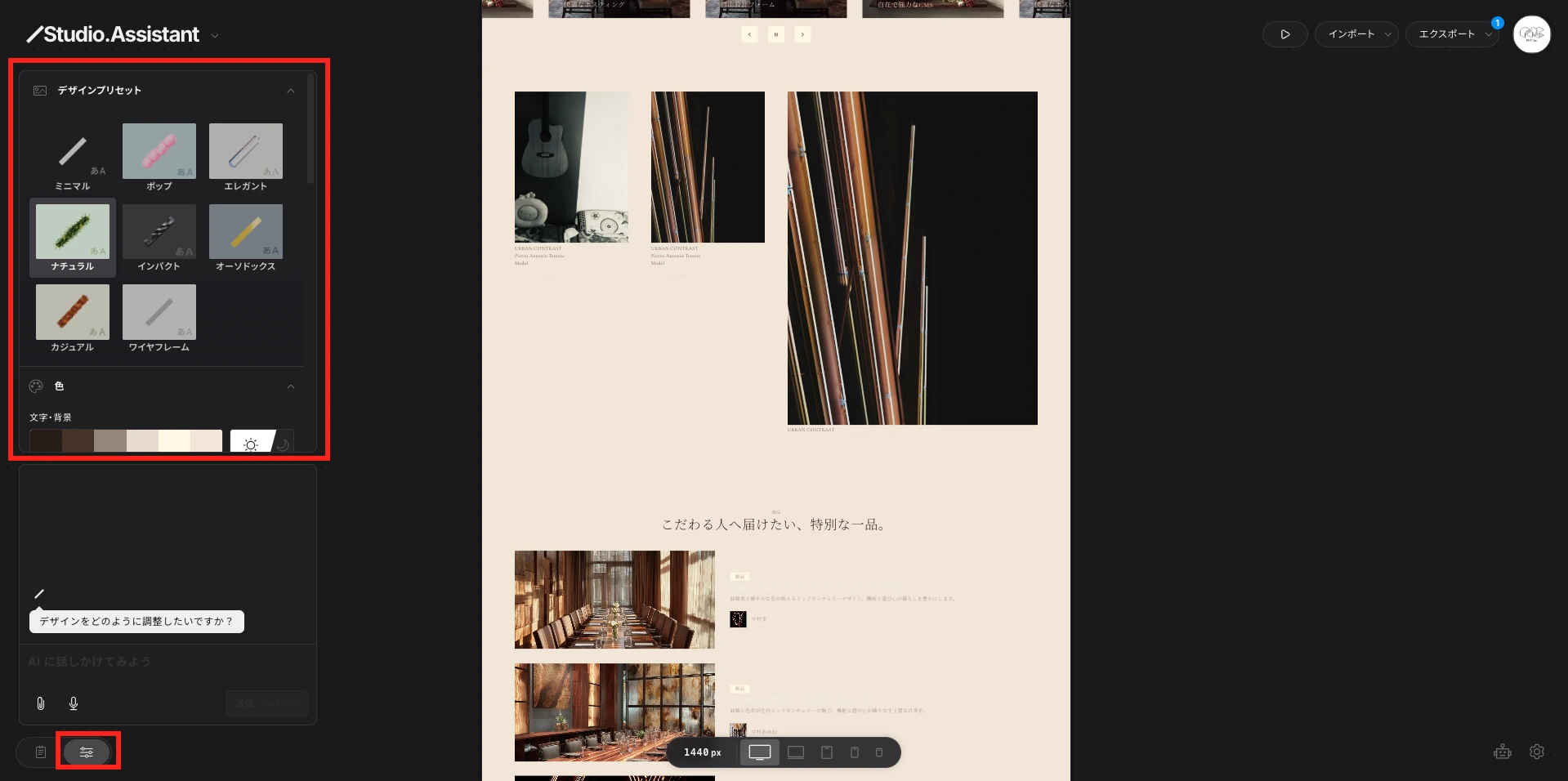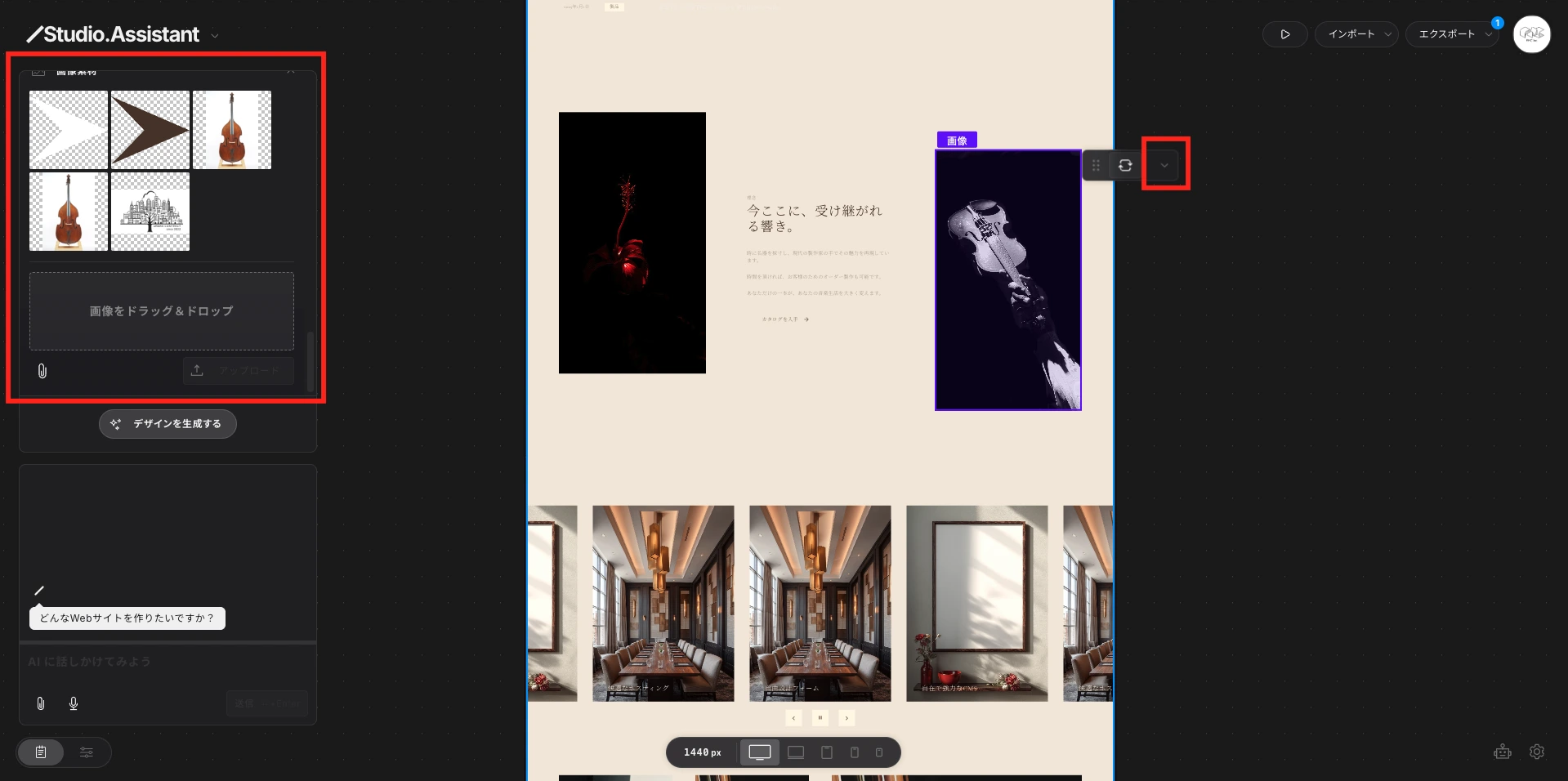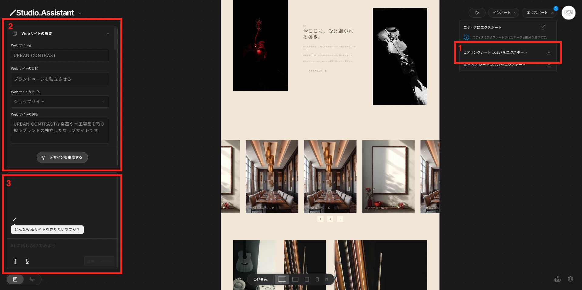 Studio Assistant(Beta)は、Studioが2025年12月にリリースした、Webサイト制作の初期工程を一気通貫で自動化するAI搭載ツールです。